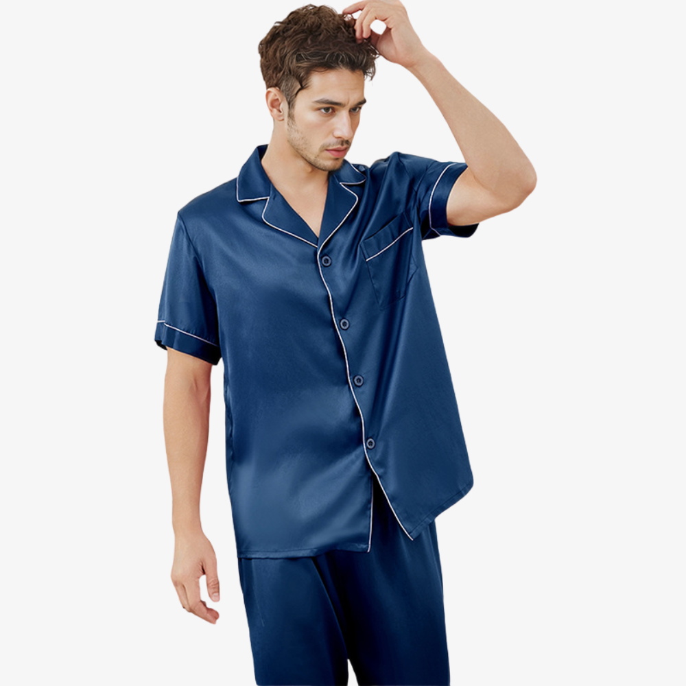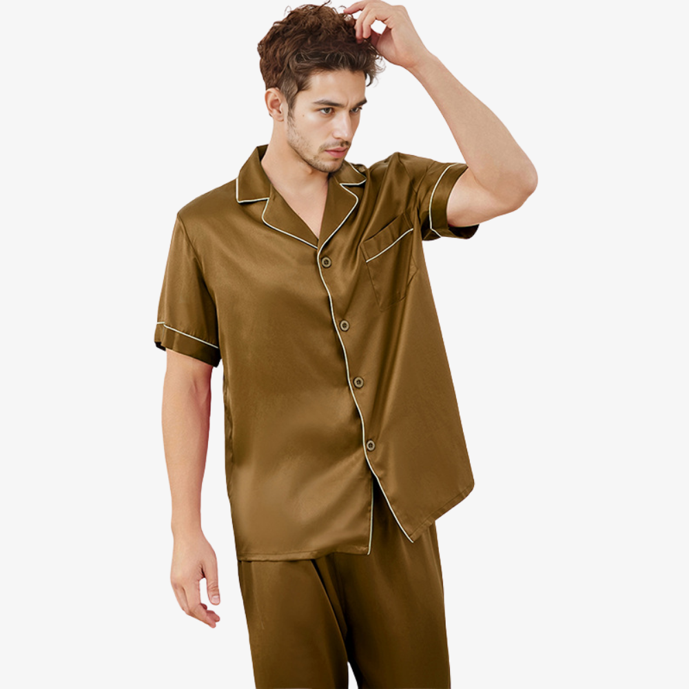 16 Momme 100% Mulberry Silk Short-Sleeve Pajama Set for Men 16 Momme 100% Mulberry Silk Short-Sleeve Pajama Set for Men