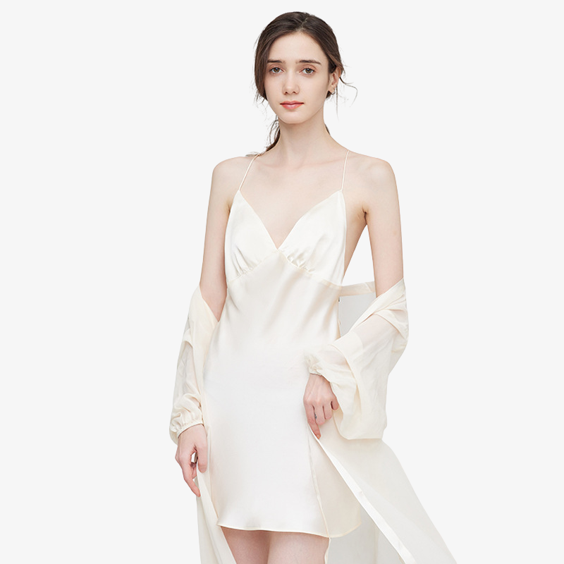 19 Momme 100% Mulberry Sheer Silk Nightdress & Robe Set 19 Momme 100% Mulberry Sheer Silk Nightdress & Robe Set