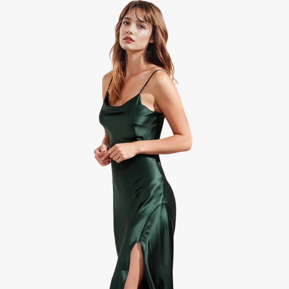 19 Momme 100% Mulberry Silk Cowl-Neck Slit Nightgown 19 Momme 100% Mulberry Silk Cowl-Neck Slit Nightgown
