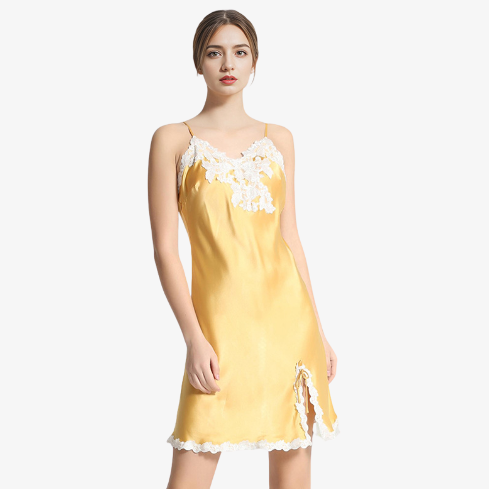 19 Momme 100% Mulberry Silk Lace Backless Slit Nightgown 19 Momme 100% Mulberry Silk Lace Backless Slit Nightgown