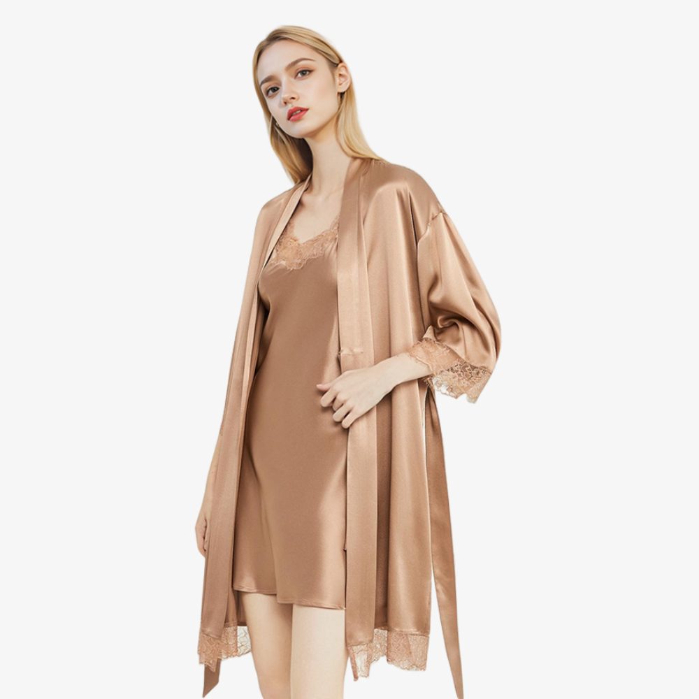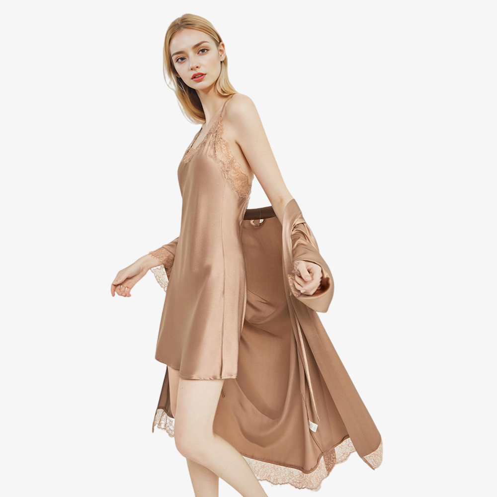 19 Momme 100% Mulberry Silk Lace Camisole & Robe Set 19 Momme 100% Mulberry Silk Lace Camisole & Robe Set