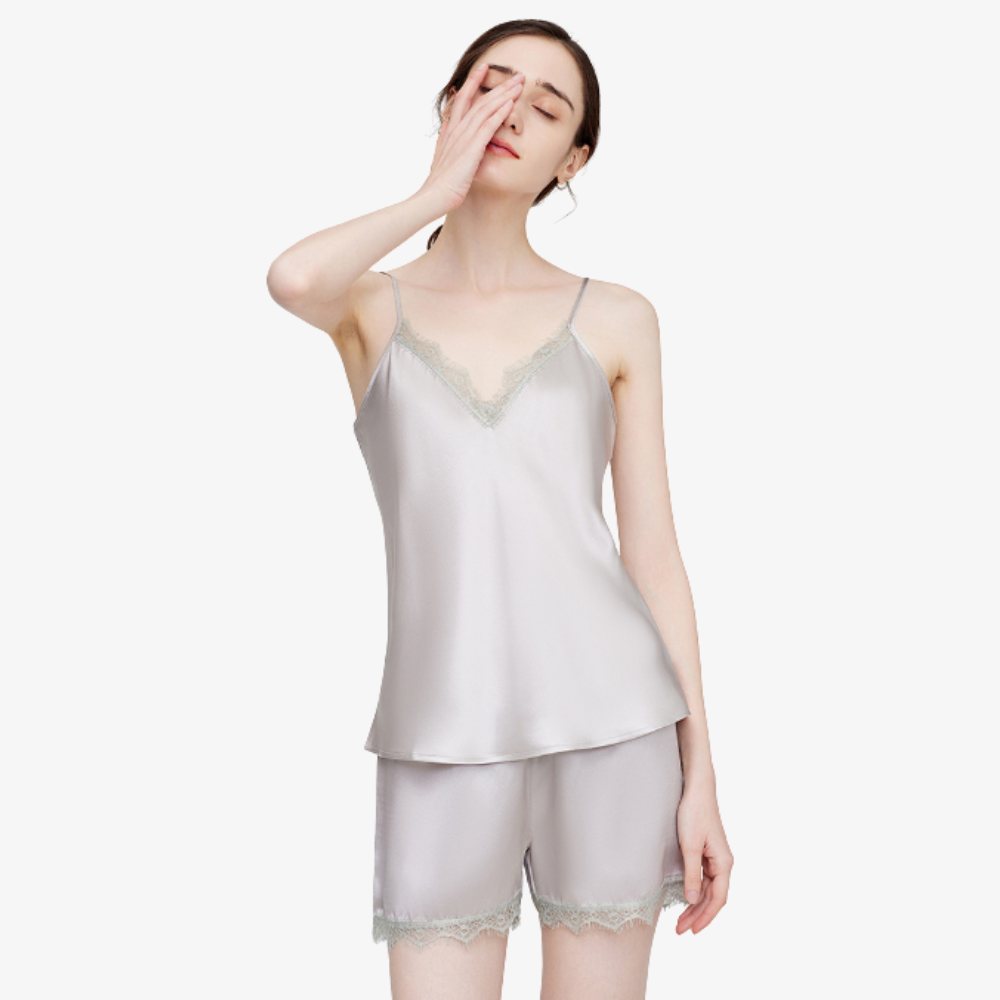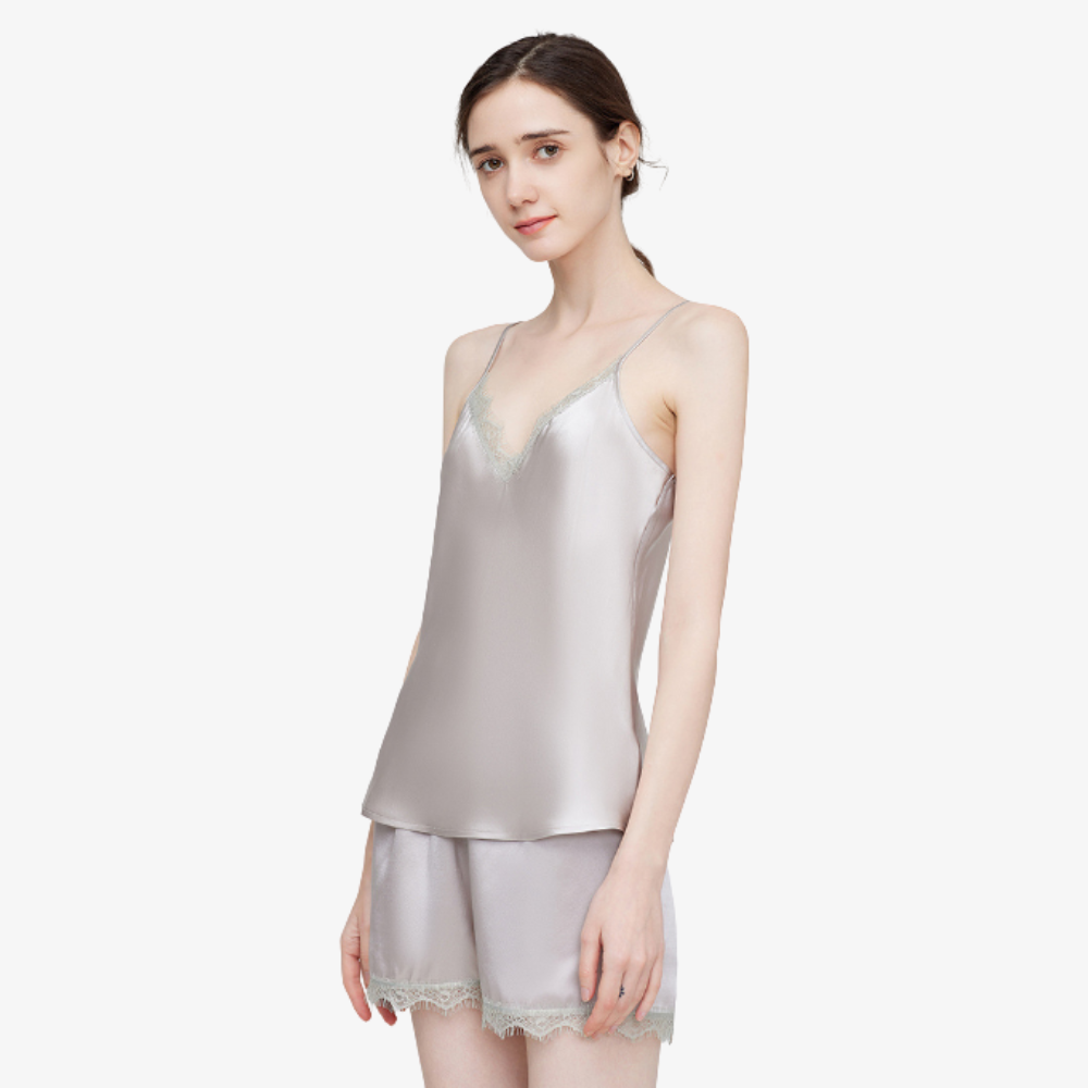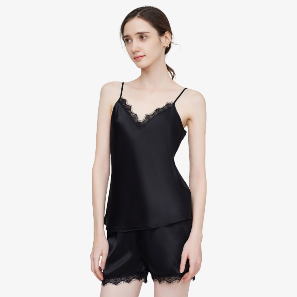 19 Momme 100% Mulberry Silk Lace-Trimmed Cami Pajama Set 19 Momme 100% Mulberry Silk Lace-Trimmed Cami Pajama Set