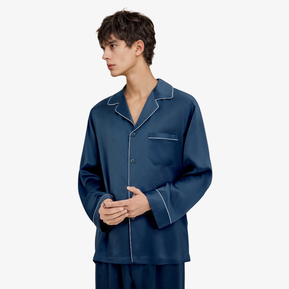 19 Momme 100% Mulberry Silk Men’s Long-Sleeve Pajama Set 19 Momme 100% Mulberry Silk Men’s Long-Sleeve Pajama Set