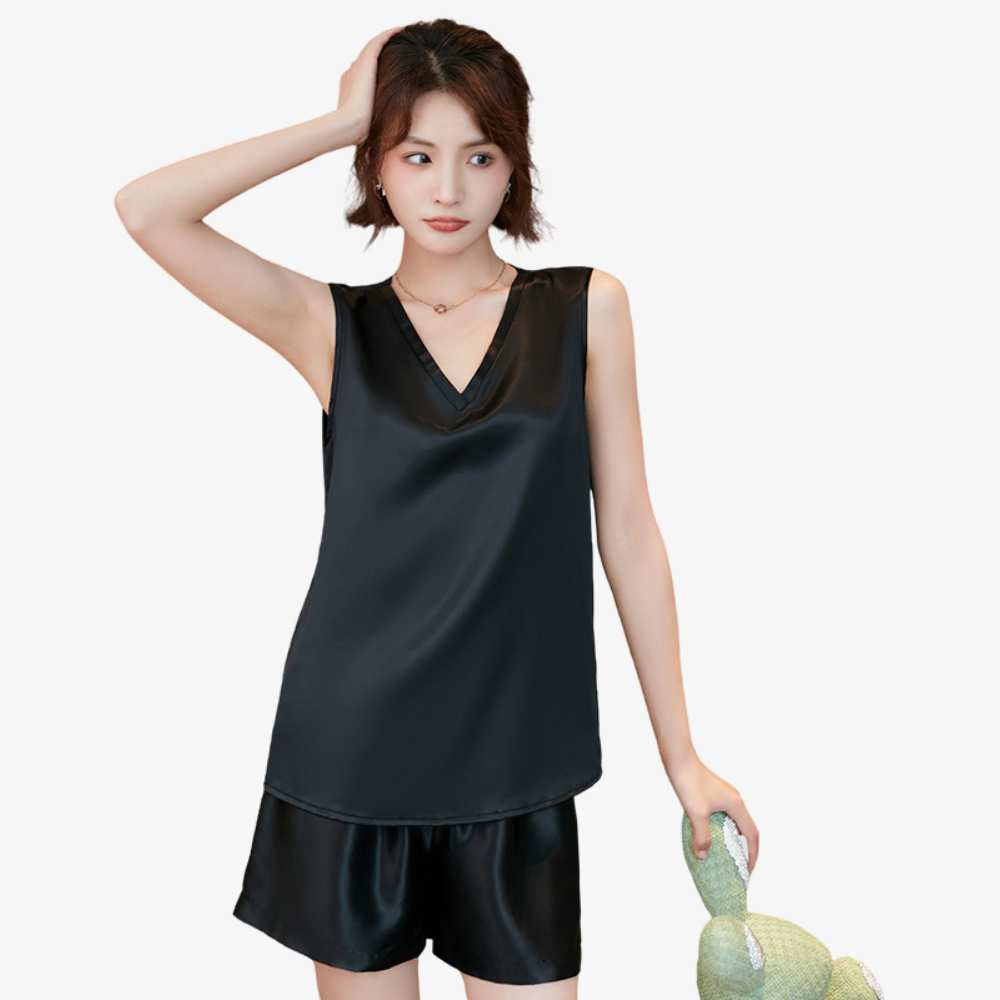 19 Momme 100% Mulberry Silk Sleeveless Shorts Pajama Set 19 Momme 100% Mulberry Silk Sleeveless Shorts Pajama Set