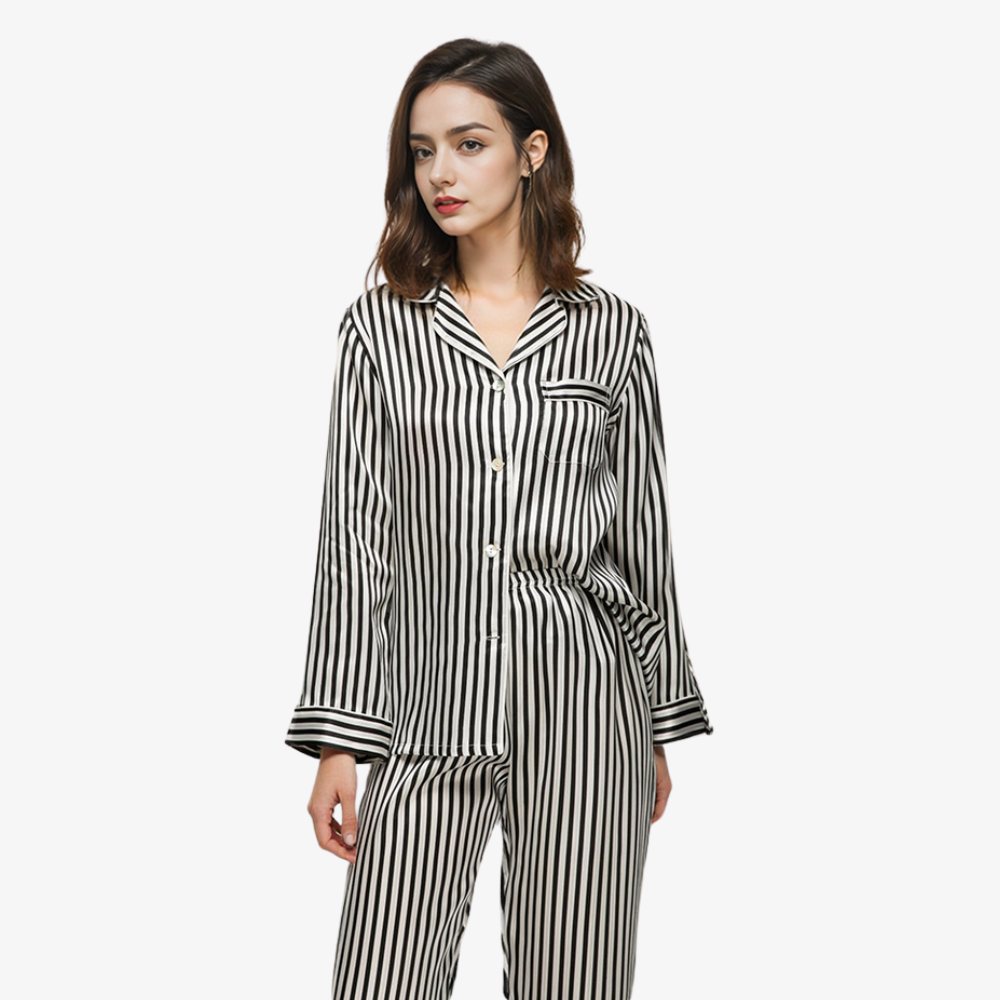 19 Momme 100% Mulberry Silk Striped Pajama Set 19 Momme 100% Mulberry Silk Striped Pajama Set